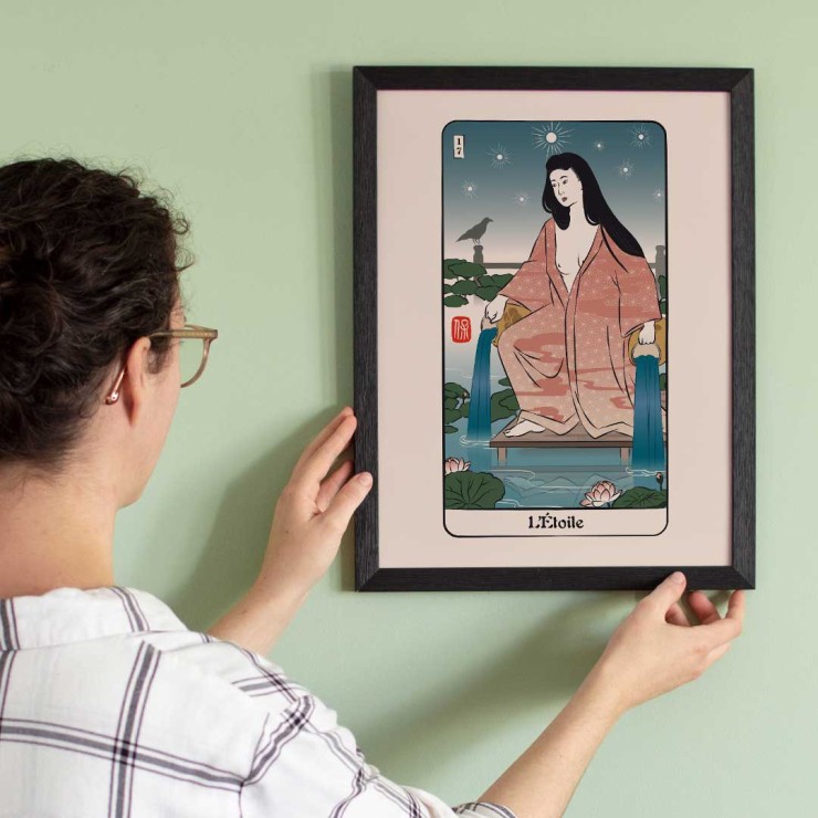 Affichez votre carte préférée du Tarot d'Edo et profitez de sa magie au quotidien ! Vous pouvez aussi créer un cabinet de curiosité avec plusieurs affiches correspondant à vos arcanes favoris.